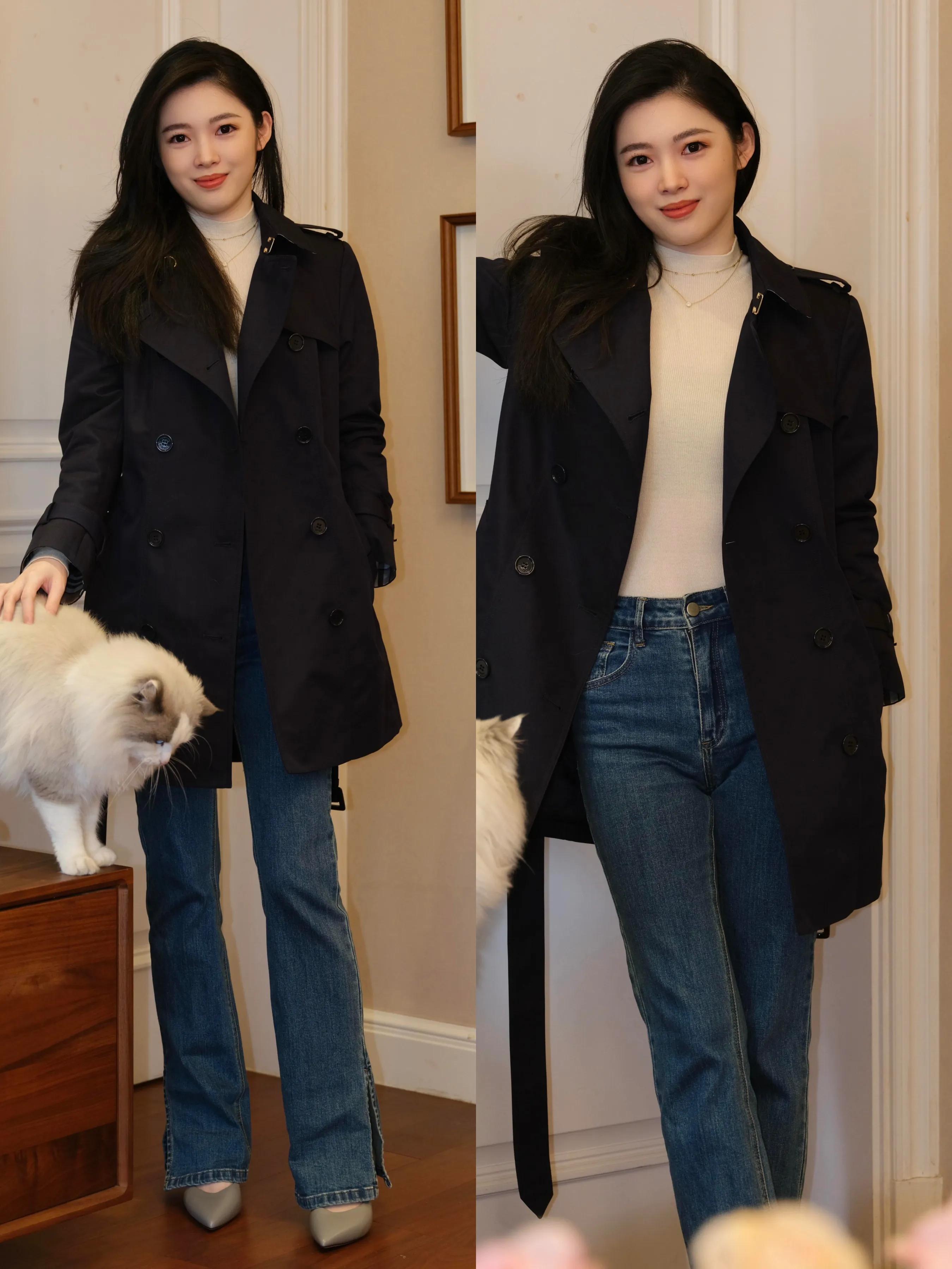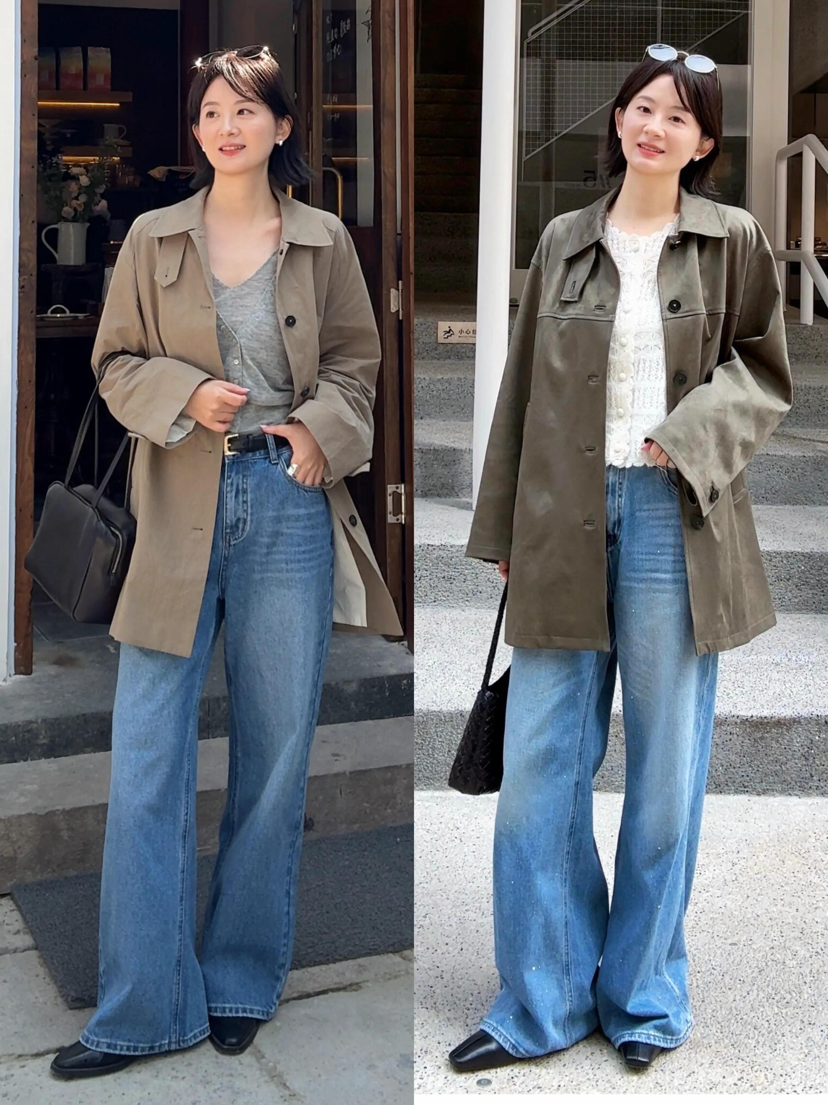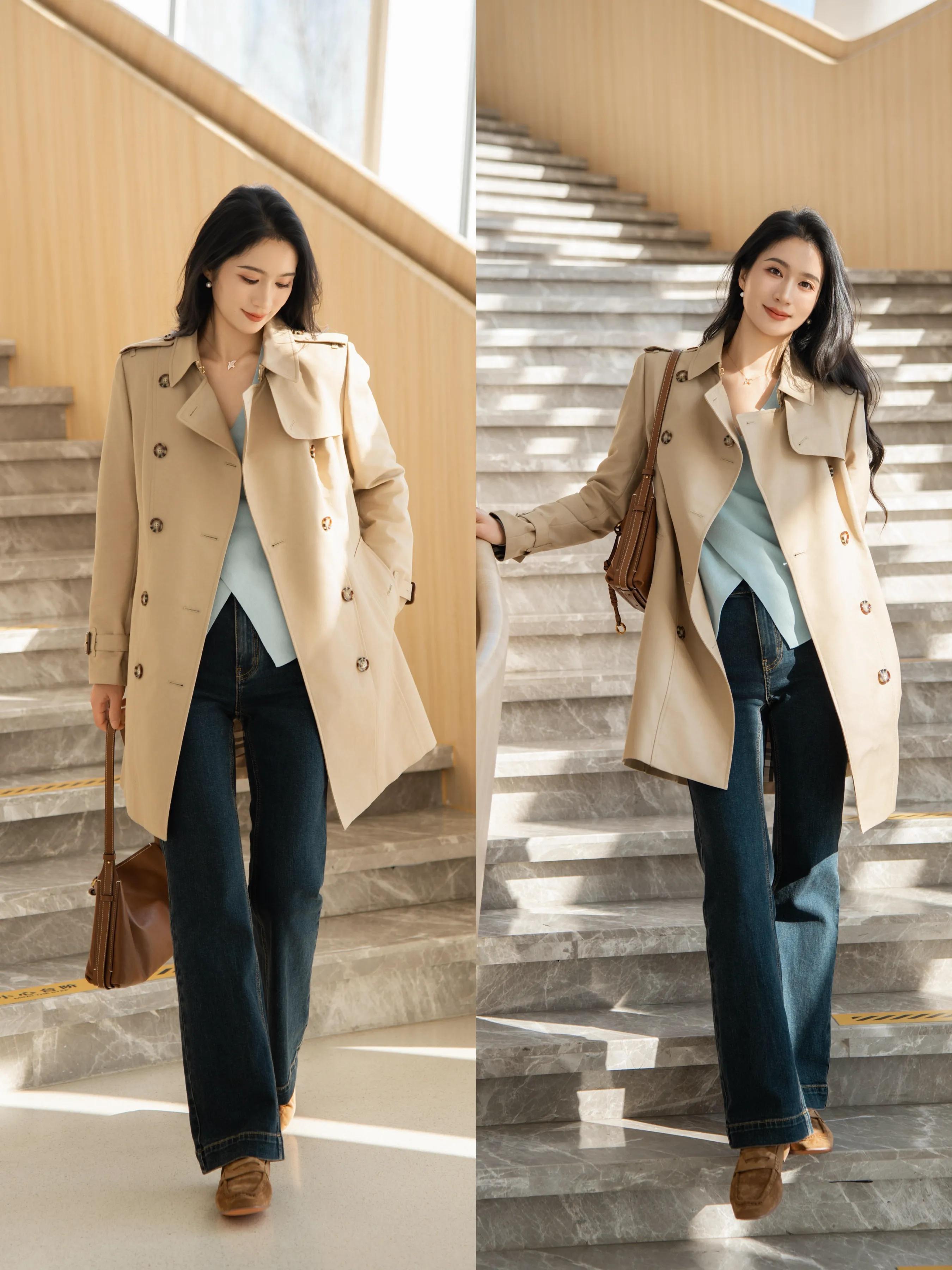 若是偏爱清清爽爽的穿衣风格,不拖沓不邋遢,那么就选择牛仔直筒裤,穿在身上就能让你拥有修长美腿,再配上中长款卡其色风衣,让你走路自带风,又飒又美。