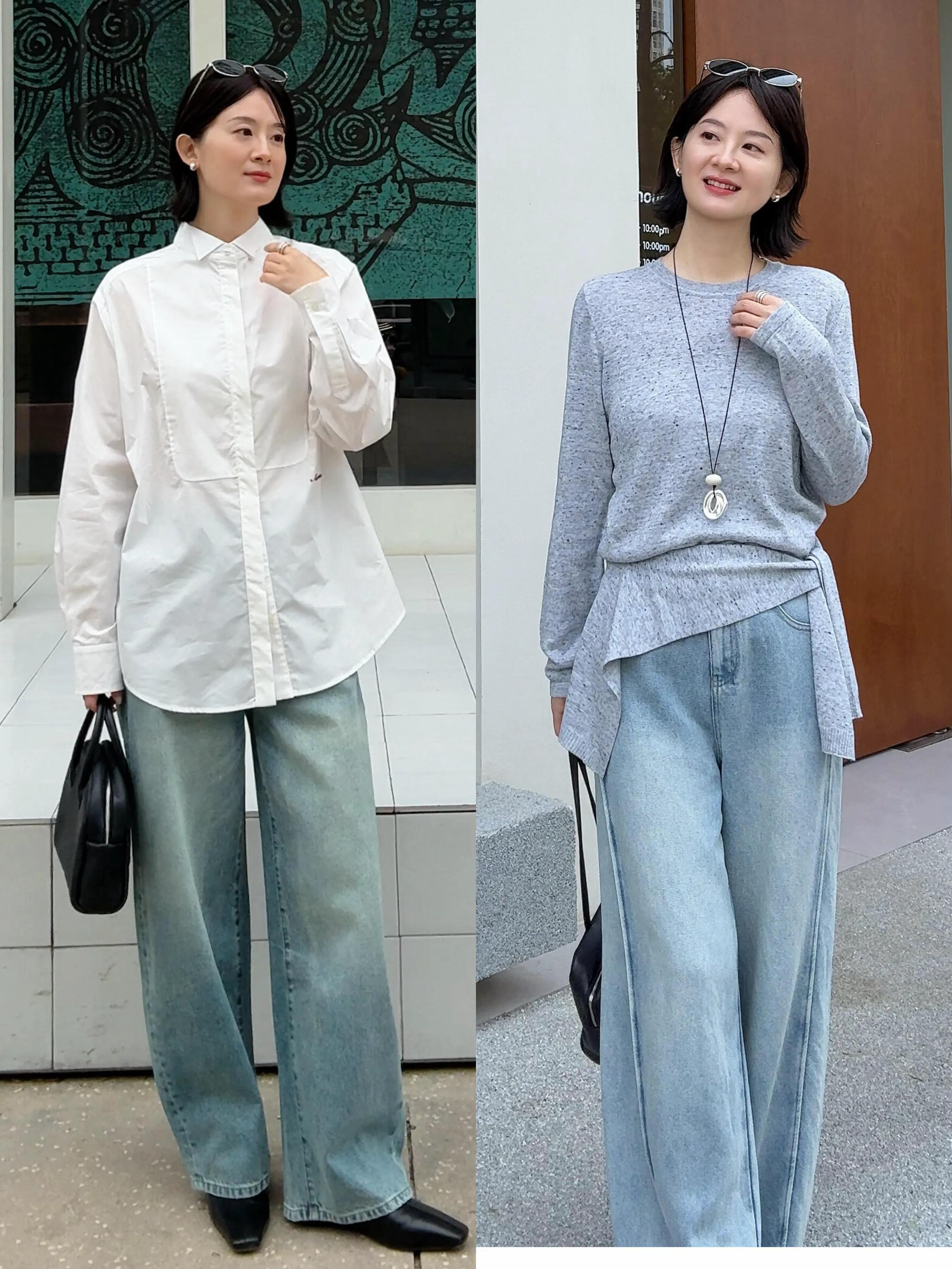 第三章节:春季如何穿更清爽?Tips①:白衬衫+蓝色牛仔直筒阔腿裤